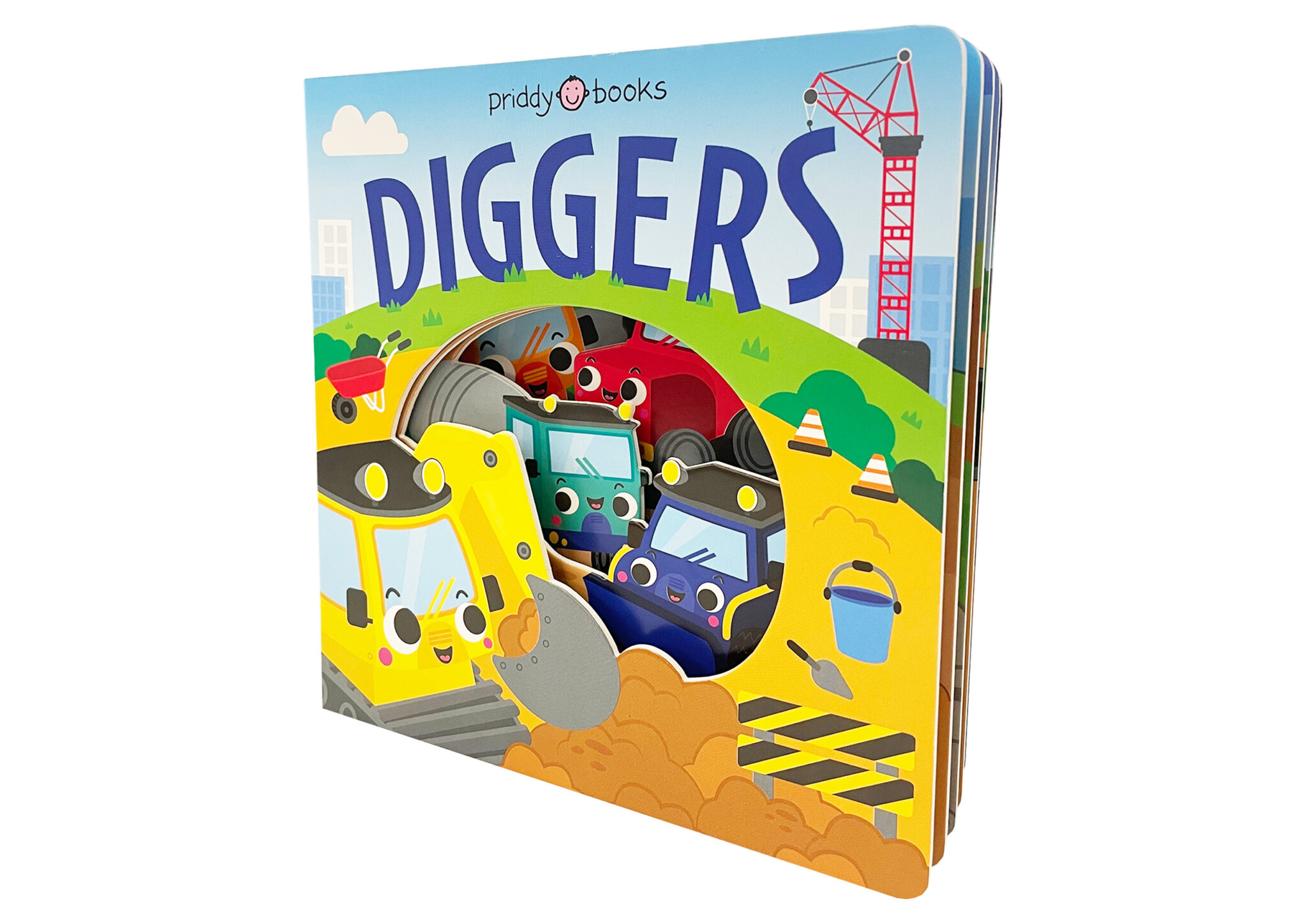 With chunky board pages and colorful illustrations of diggers with sweet faces, this book is a fantastic introduction to the trucks that work on construction sites and the different jobs that they do.