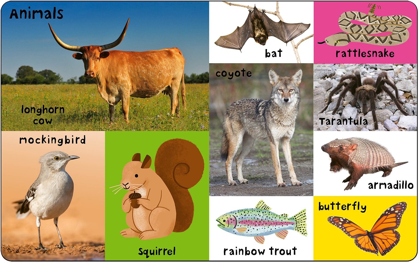 This small, padded board book is packed full of photographs and illustrations of different things that represent Texas, from the Alamo to barbecue to the State Fair.