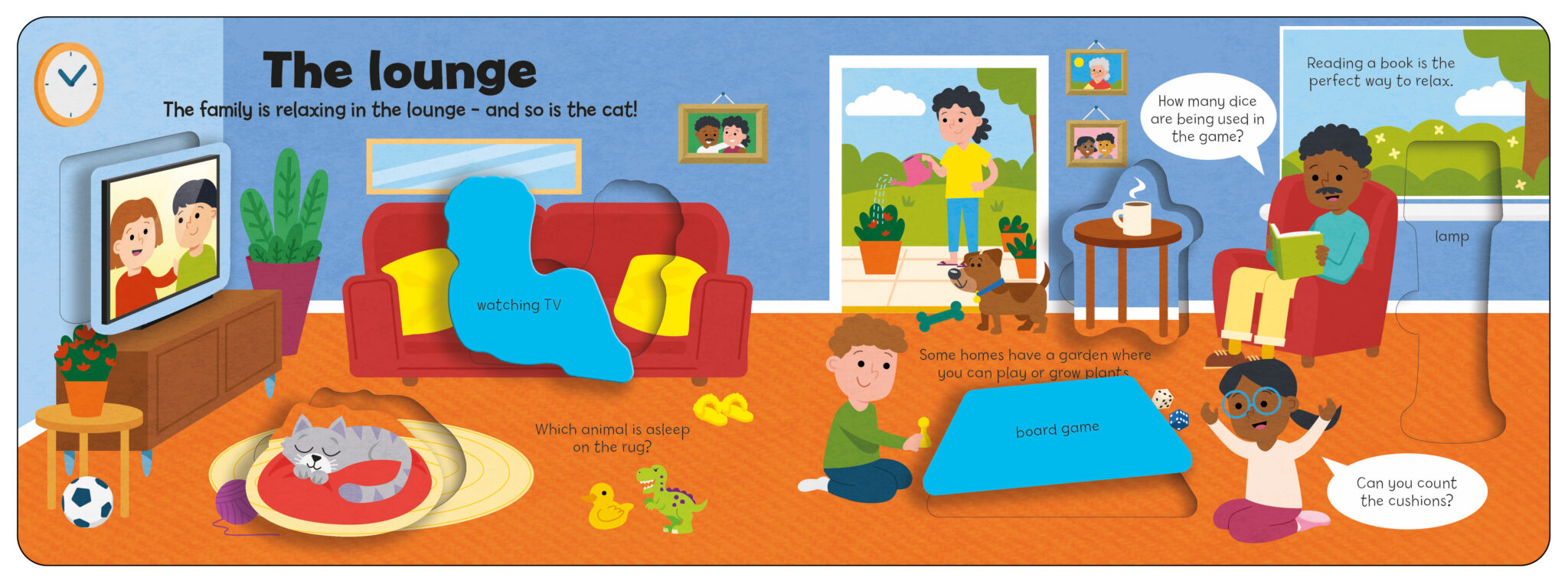 Young children will love adding the puzzle pieces into the pages as they learn about the home in this interactive book, part of the Let’s Learn & Play series by Priddy Books.